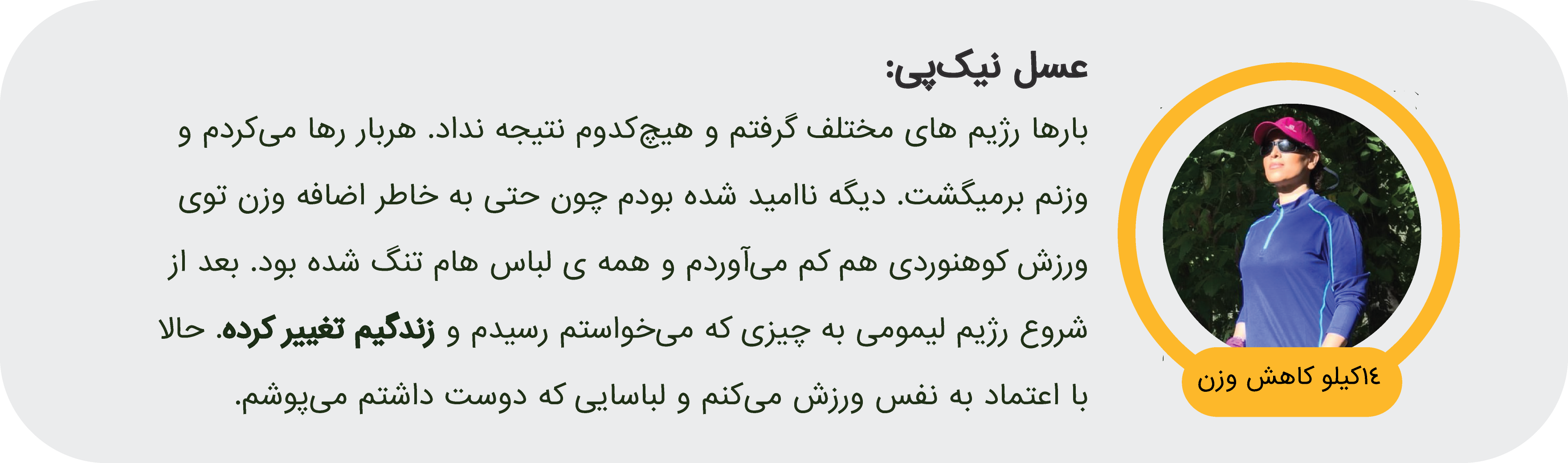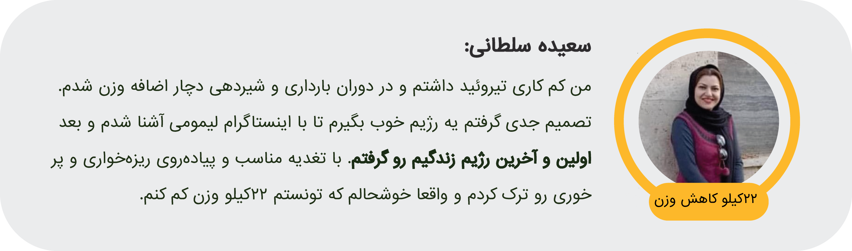 جالبه بدونید که تا کنون در بازه سنی شما با برنامه غذایی استاندارد لیمومی بدون رها کردن رژیم و خستگی به سلامتی و تناسب اندام دست یافته اند.